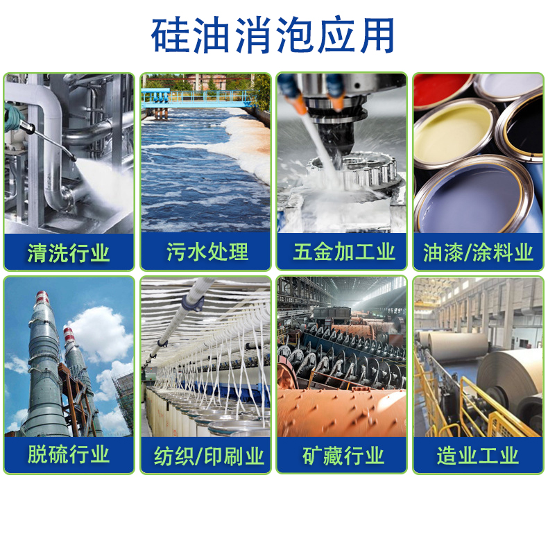 长链烷基硅油消泡剂可应用在发酵、食品加丁、医疗、纺织、石油、合成橡胶及树脂、涂料及油墨等领域。由于对有机材料具有良好的亲和性,长链烷基硅油消泡剂不会影响产品的后加工性能。但其表面张力随碳链的增加而提高,消泡性能随之降低,因此选择合适的碳链长度很重要。长链烷基硅油在非水体系和水体系的消泡中都有应用 。