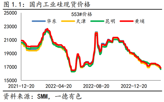 2022年12月22日工业硅商品期货成功上市,在春节前消费疲软的基本面情况下上市前两个交易日内工业硅现货价格从19700元/吨下跌至17000元/吨,但现货市场表现平稳回落报价并未跟随期货价格波动,期货价格宣泄情绪后开始反弹。但新进期现贸易商的参与打破了原有工业硅行业的贸易模式及现货市场供需格局,春节后新进贸易商现货市场积极采购缓解了厂家的销售压力,现货市场出现为期一周短暂的反弹。但终端实际消费除了多晶硅需求平稳外,有机硅及铝合金仍处于放假期间采购积极性不高,尤其有机硅行业依旧面临全行业亏损的情况,复产复工积极性不高。在弱消费显示的情况下,期现货价格同步下滑,且由于期现贸易商的抛售使得价格出现了踩踏行为,3月底期货价格跌破16000元/吨,跌破部分企业生产现金流成本,南方地区工厂出现新一轮的减产行为,且复产计划频频推迟。西南供给端收缩明显,但西北新增产能投放如常,造成一季度全国产量大幅度走高,对市场价格形成压力。