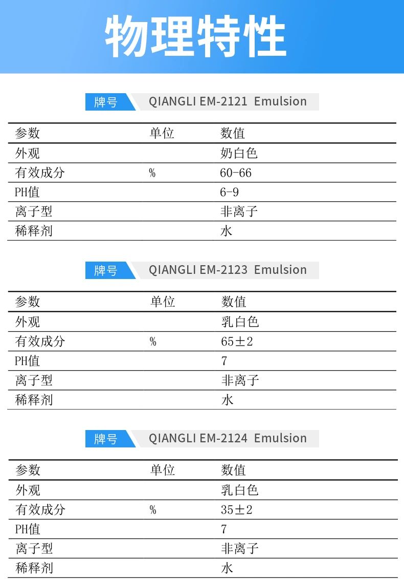 • 在 50°C 温度以下具有良好的乳液稳定性