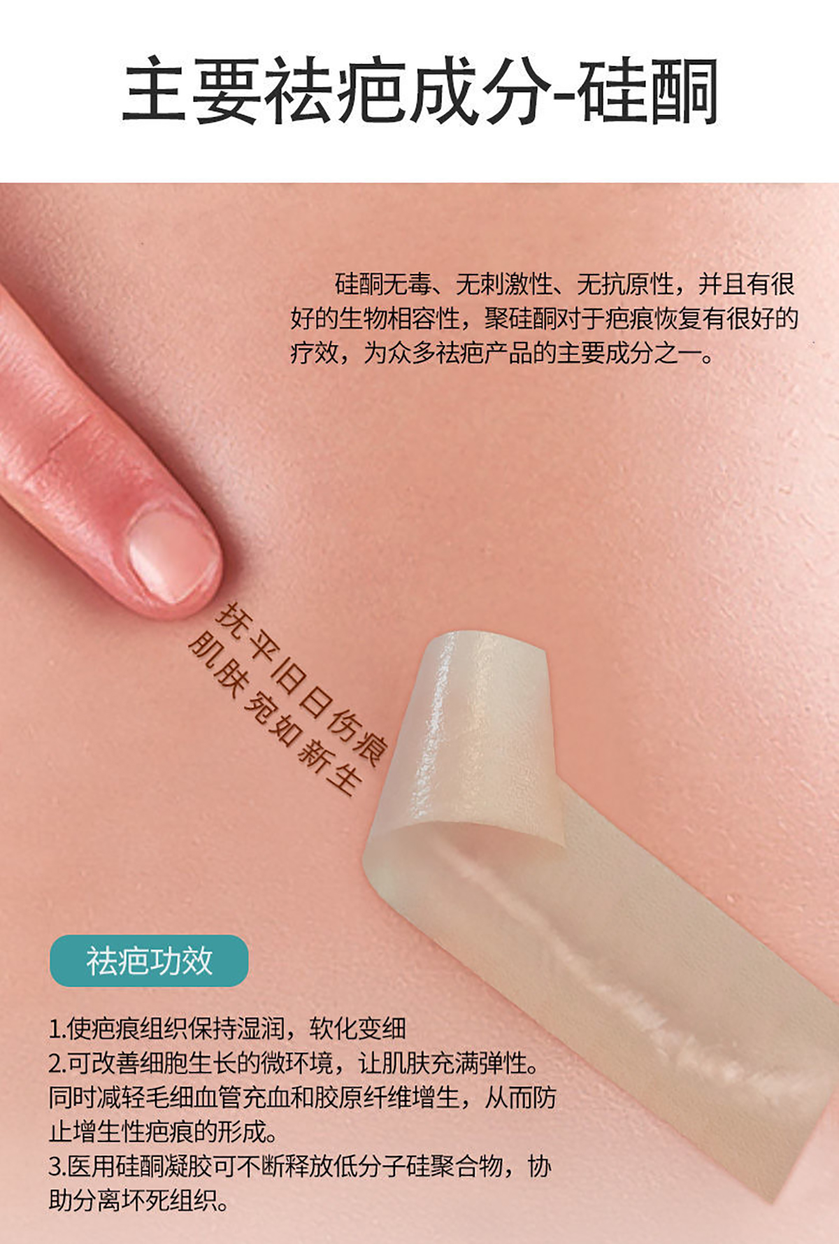 硅胶类产品有明确的抑制疤痕增生,促进疤痕成熟软化的作用同时又没有毒副作用,没有耐药性的问题,任何年龄的男女性患者都可以使用,即使孕妇和哺乳期妇女也不例外,所以临床上应用的比较广泛。