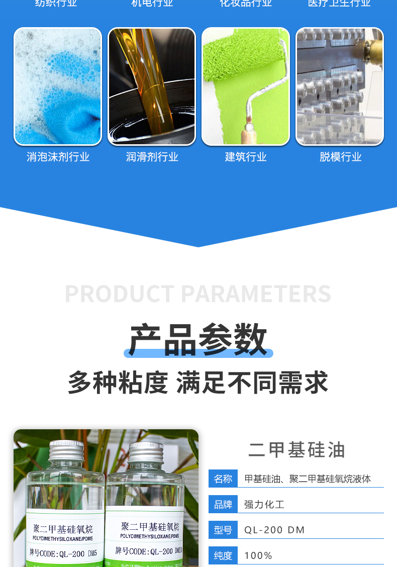 强力化工低粘度二甲基硅油5-12500粘 桶装200KG