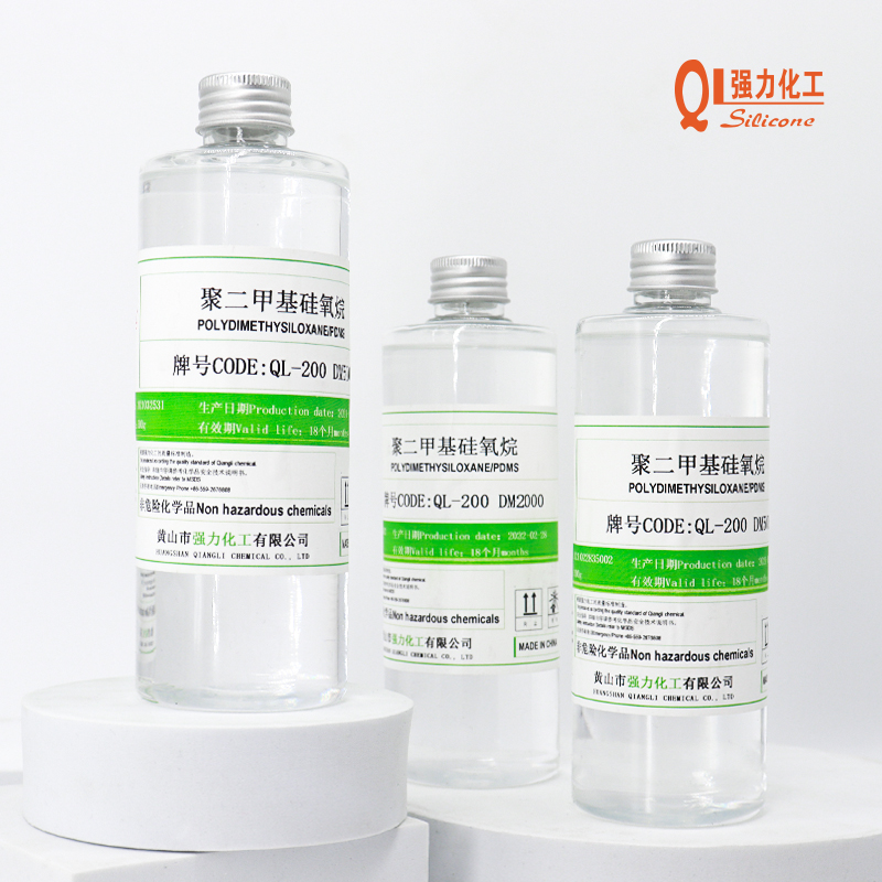 二甲基硅油无味无毒,具有生理惰性、良好的化学稳定性、电缘性和耐候性,粘度范围广,凝固点低,闪点高,疏水性能好,并具有很高的抗剪能力,可在50~180oC温度内长期使用,广泛用做绝缘、润滑、防震、防尘油、介电液和热载体,有及用作消泡、脱膜、油漆和日用化妆品的添加剂等。