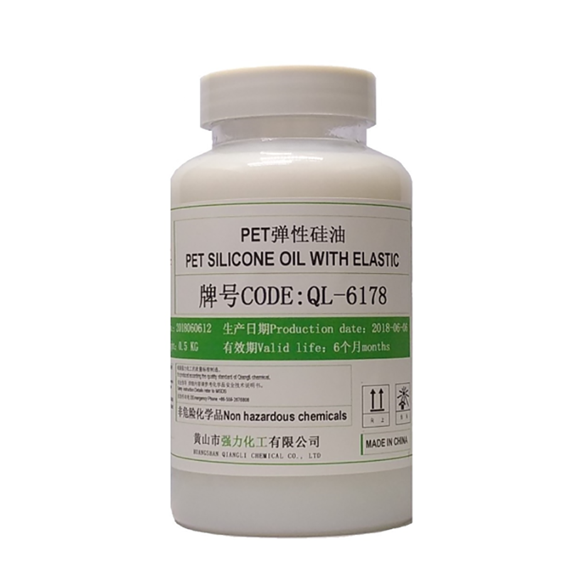 推荐QL-6178 PET弹性硅油添加1%~3%的QL-9018或QL-9028硅油交联剂配合使用。