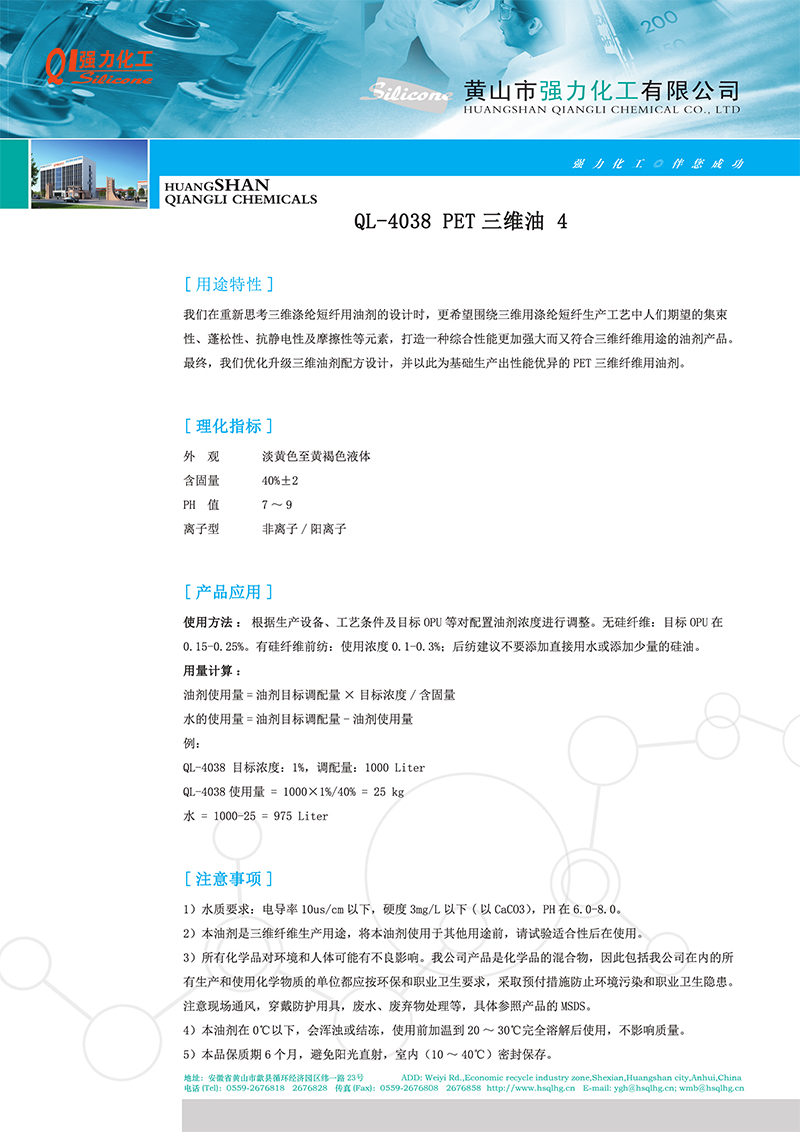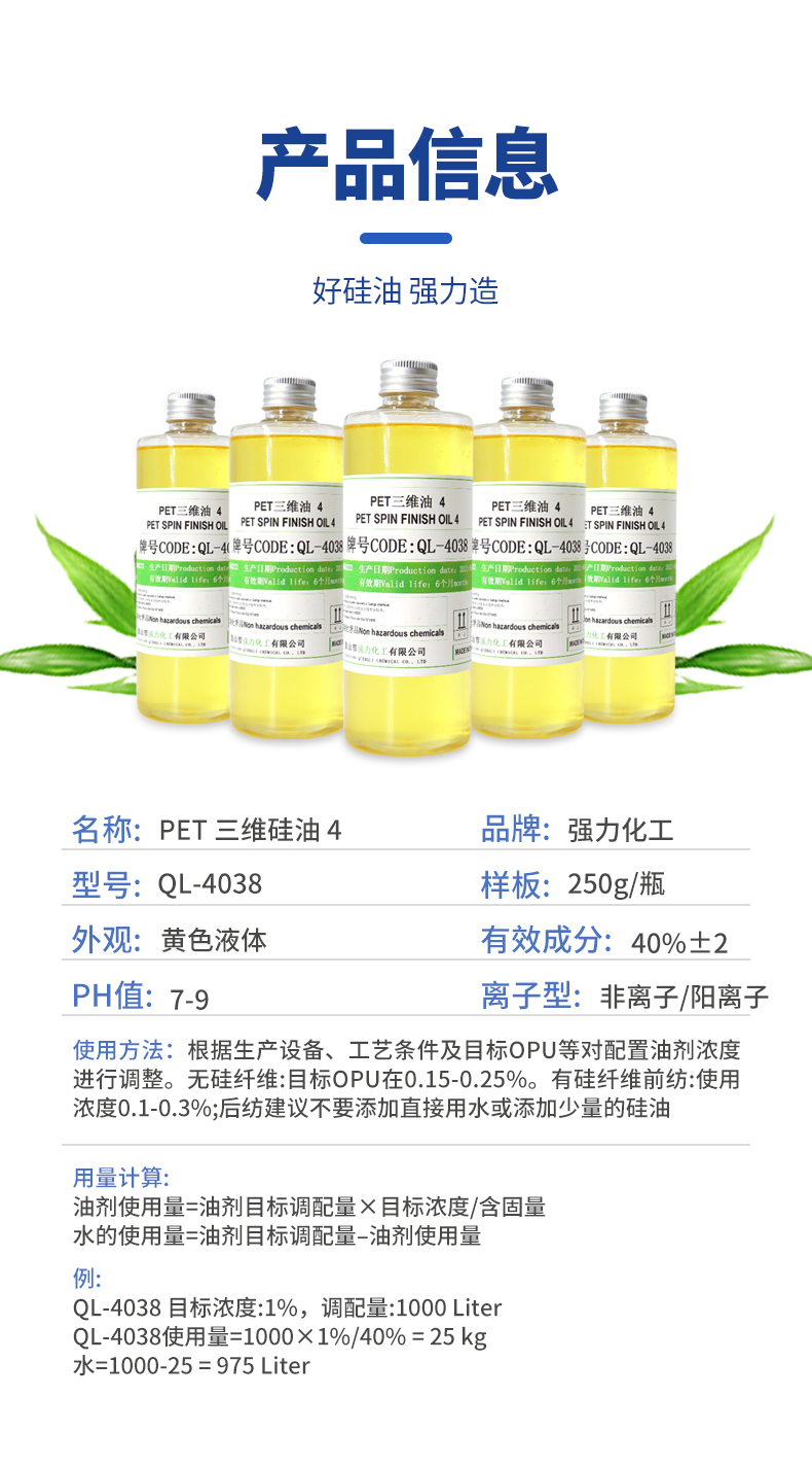 强力化工牌号QL-4038 PET三维油4 纺织处理剂